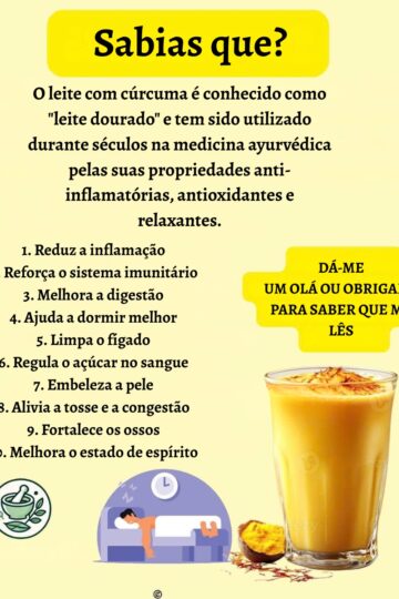 O leite com cúrcuma, conhecido como golden milk ou “leite dourado”, é uma bebida tradicional da medicina ayurveda que combina aconchego, sabor e benefícios naturais para o bem-estar. Preparado com leite quente e cúrcuma, pode incluir ingredientes como pimenta-preta, mel ou canela para potenciar os seus efeitos. A seguir, veja os principais benefícios e aprenda […]