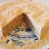 4. Corte o bolo ao meio, recheie com metade dos ovos moles e coloque a outra metade por cima.