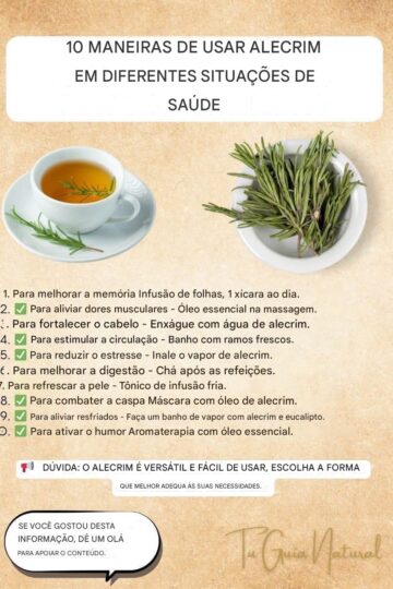 O álcool de alecrim é um remédio natural tradicional, usado há séculos por suas propriedades terapêuticas. Ele ajuda a melhorar a circulação, aliviar dores musculares e articulares, reduzir o inchaço e até melhorar a aparência da pele. A seguir, aprenda como preparar o seu próprio álcool de alecrim em casa e descubra seus principais benefícios. […]