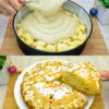 Despeje a massa sobre as maçãs e nivele com uma espátula. - Asse o bolo: