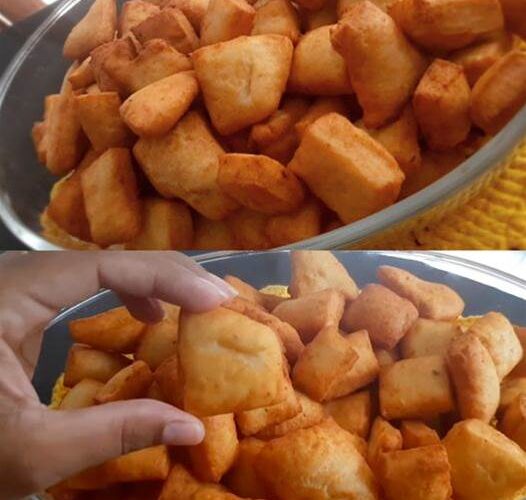 - Aqueça óleo em uma frigideira e frite os pedaços de massa até dourarem.