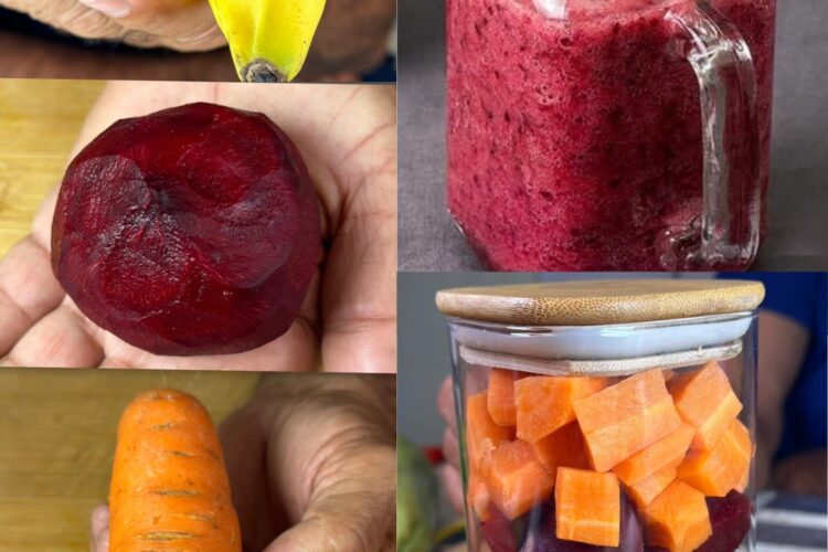 Este suco natural combina banana, beterraba e cenoura para oferecer energia, disposição e suporte à circulação de forma leve e nutritiva. Ideal para consumir antes do treino ou ao longo do dia para manter o foco e a vitalidade.